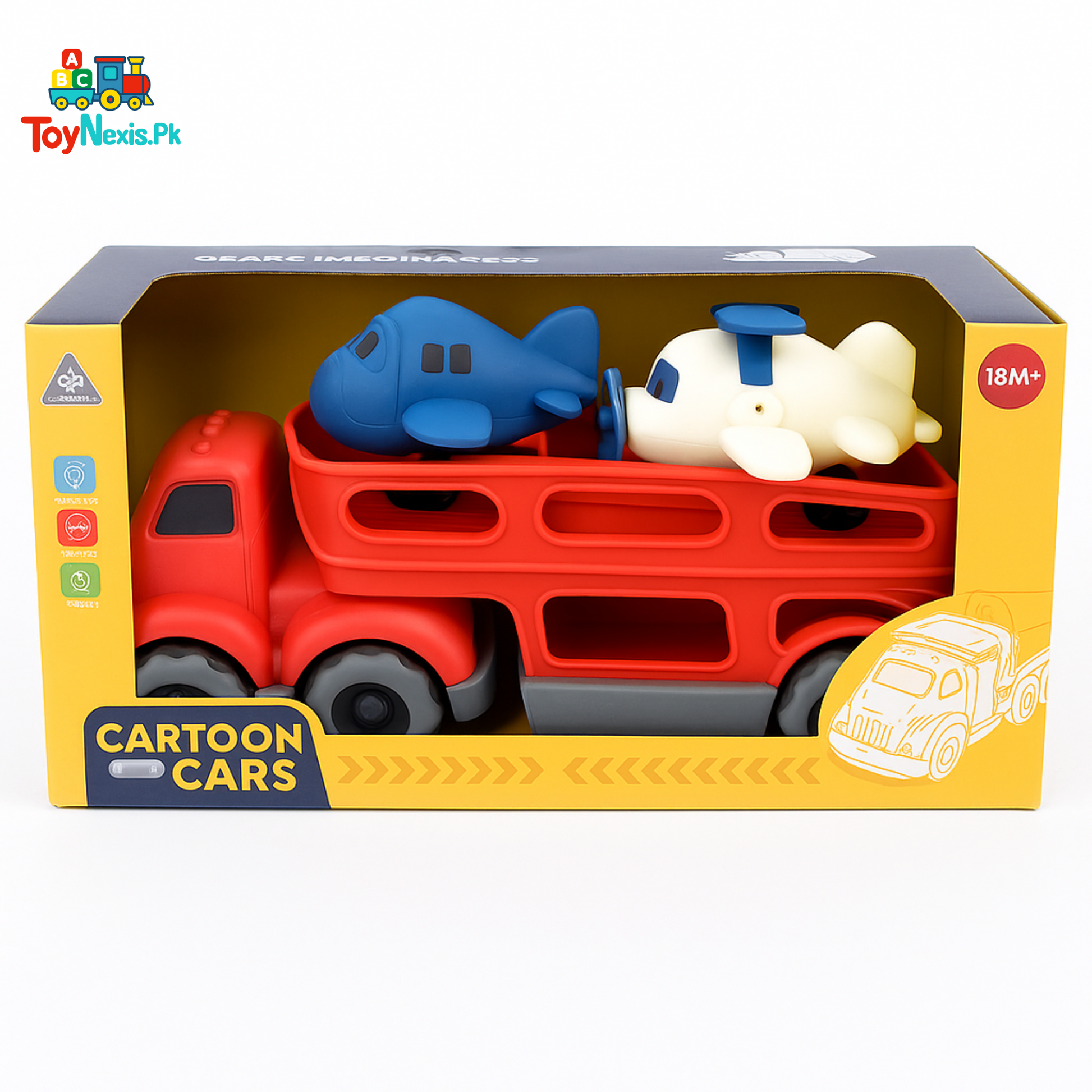 Zoom into adventure with this colorful Cartoon Carrier Truck loaded with two cute airplane toys! Designed for toddlers 18 months and above, it’s perfect for little hands and big imaginations.