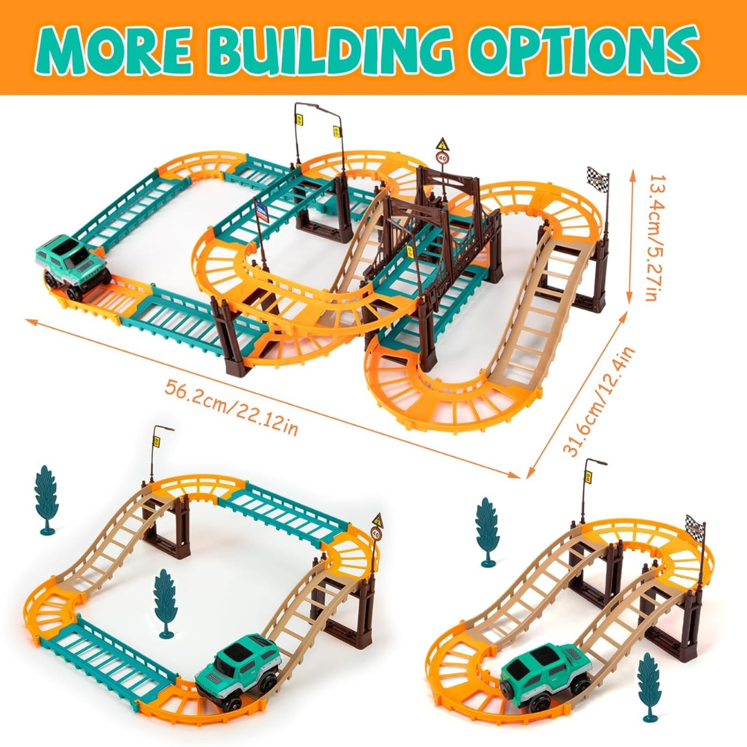 This dynamic set includes track pieces, bridges, pillars, and toy cars — allowing children to build their own custom racetracks. With every twist, turn, and jump, kids learn about balance, design, and motion, making playtime both fun and educational.